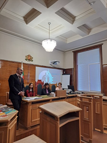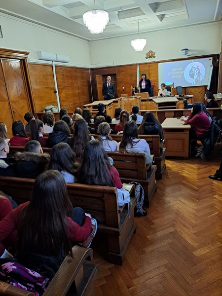 От 15:00 часа учениците от ІХ А и ІХ В клас от същото училище, посетиха Районен съд и участваха в лекция на тема „Насилие“ . В съдебна зала № 7 Съдия Велизар Бойчев разясни насилието и престъпленията свързани с него като внесе повече яснота в термините –телесна повреда, сексуално насилие, хулиганство и обида. Съдия Елена Балджиева разказа за домашното насилие, а психолог Деана Димова представи Сдружение Център Динамика, което предлага настаняване в Кризисен Център и безплатни консултации на жертви или свидетели на насилие.
