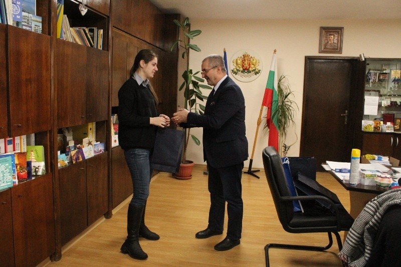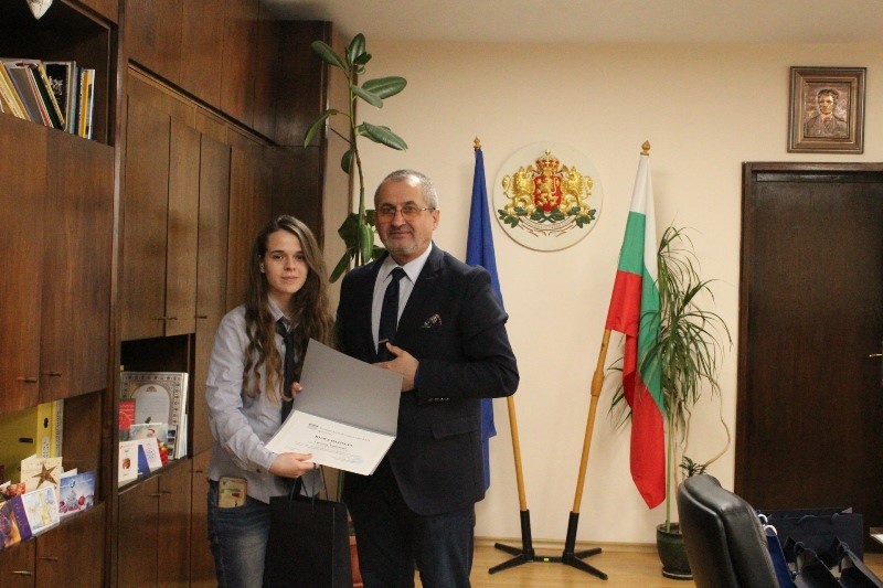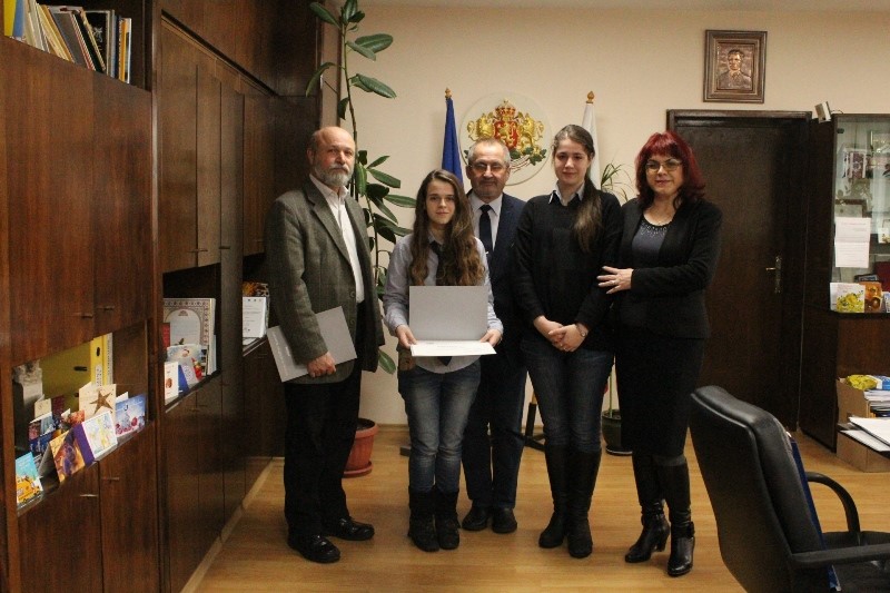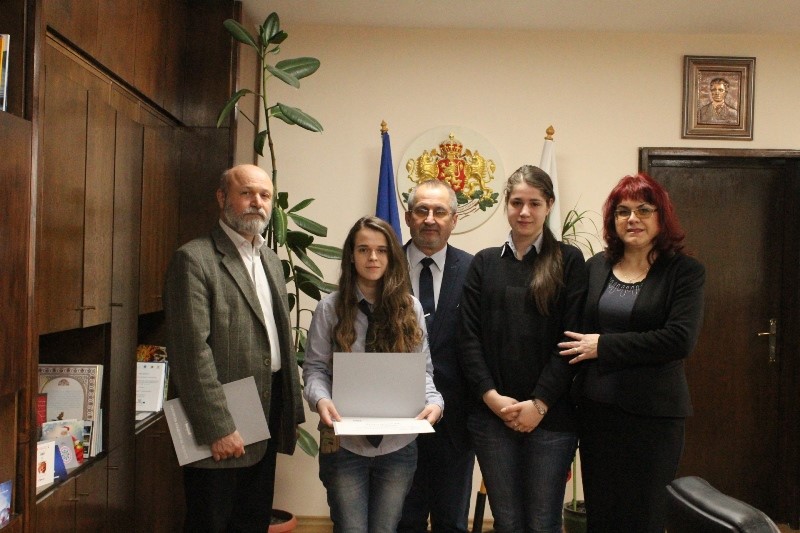 Поводът на срещата беше връчване на грамоти за участието на Дона – Мария Иванова (12 клас) и Симона Христова (12 клас) в научна сесия на Ученическия институт на БАН, които са били отличени от журито на първо и второ място.