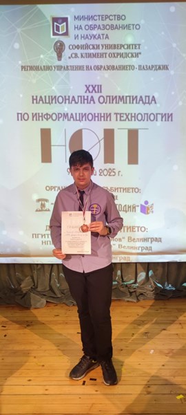 Националната олимпиада по информационни технологии е един от най-престижните форуми за млади таланти в областта на информационните технологии. Постижението на ученика от СУПНЕ "Фридрих Шилер" затвърждава позициите на русенското образование в технологичната сфера и доказва високото ниво на обучение по информационни технологии в града.
