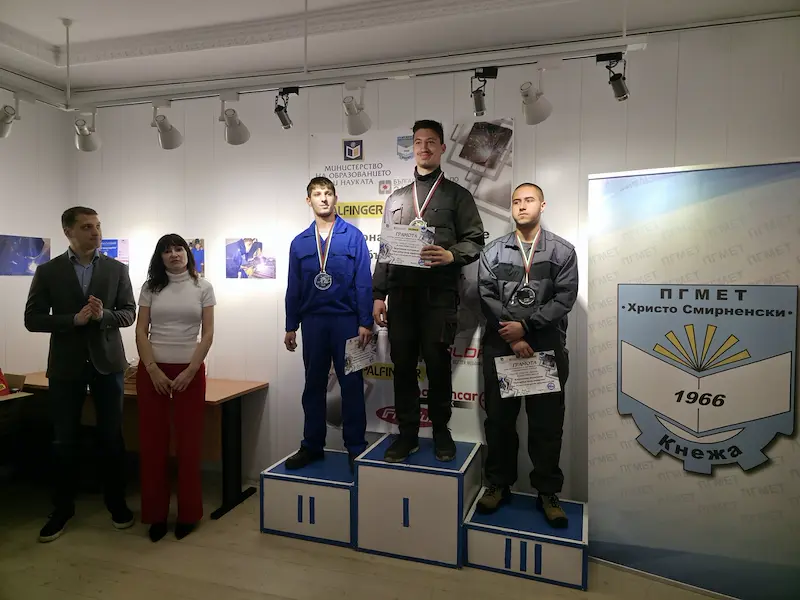 Победител в категорията за ръчно-електродъгово заваряване стана Калоян Костадинов, възпитаник на Професионалната гимназия по промишлени технологии „Атанас Цонев Буров“ в Русе. Неговият съученик Архангел Минков затвърди силното представяне на русенската школа, като зае второто място. Третата позиция остана за Кристиян Бараков от ПТГ „Васил Левски“ в Горна Оряховица.