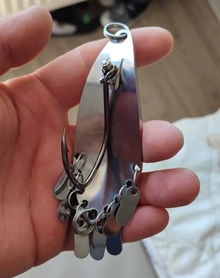 Кристиян издава и такъмите, с които е успял да улови речния звяр. Той е замятал на спининг с блесна, сребриста на цвят, тежка 55 грама. Въдица му е била ZECK Blinker Jorg Spin 2.7 метра, 30-180 грама, а макарата - PENN Slammer IV 5500. Използвал е плетено влакно с дебелина 0,42 милиметра.
