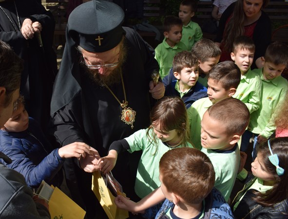 Малчуганите получиха специални великденски подаръци от Негово Високопреосвещенство Русенския митрополит Наум и Негово Преосвещенство Тивериополския епископ Тихон, които ги благословиха да бъдат здрави и ученолюбиви за радост на своите родители и близки, като се стараят винаги да помагат на хората, имащи нужда от докрепа и милосърдие.