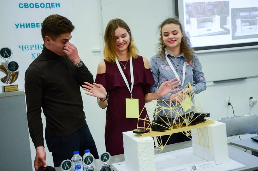 Ученици и студенти създават куполи и мостове от спагети във Варненския свободен университет