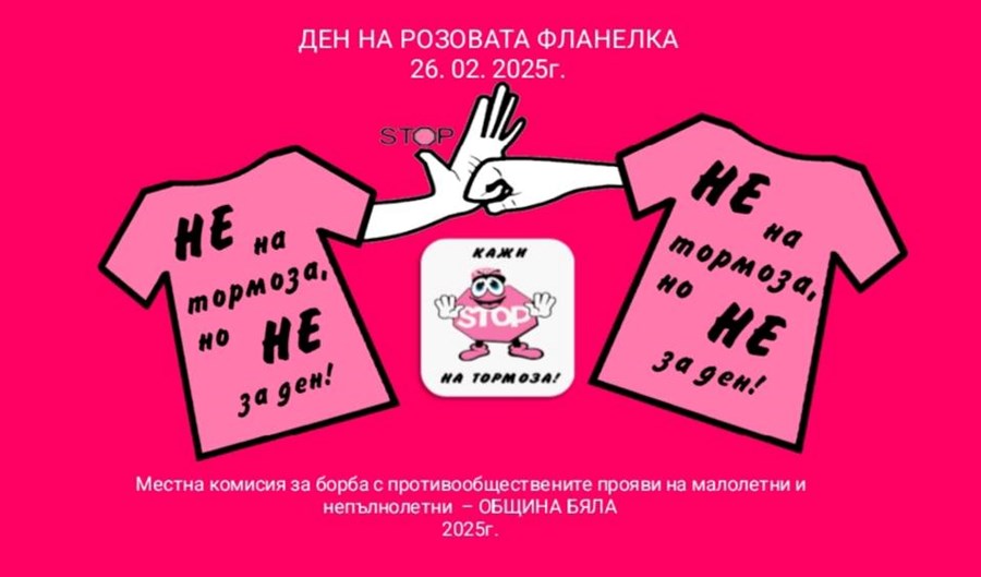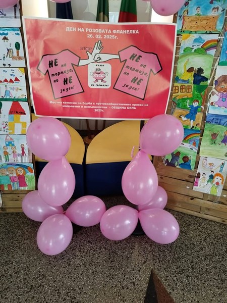 Местната комисия за борба срещу противообществените прояви на малолетните и непълнолетните (МКБППМН) в община Бяла активно подкрепи кампанията, като осигури тематични плакати и розови балони за училищата. Символите имат за цел да напомнят за необходимостта от създаване на благоприятна среда за децата, в която няма място за агресия.