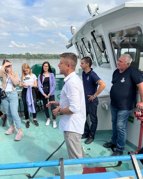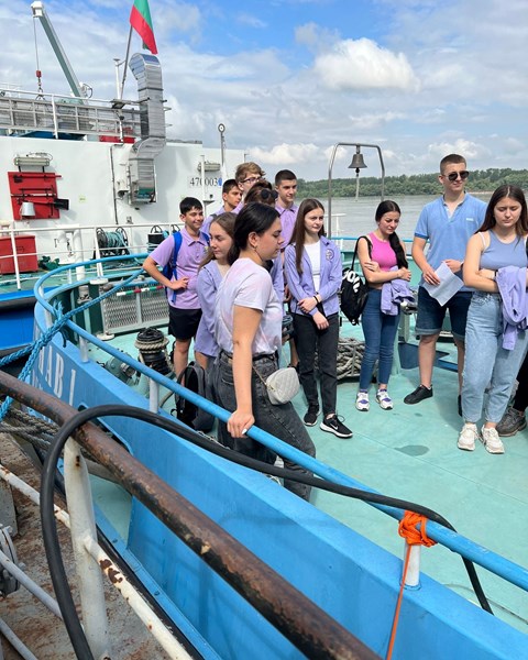 Те се качиха и на хидрографски кораб „Дунав 1“, където капитанът на кораба Венцислав Минков запозна деветокласниците с техническите параметри на плавателния съд и уредите за измерване и мониторинг и дъното на река Дунав, съобщиха от учебното заведение.