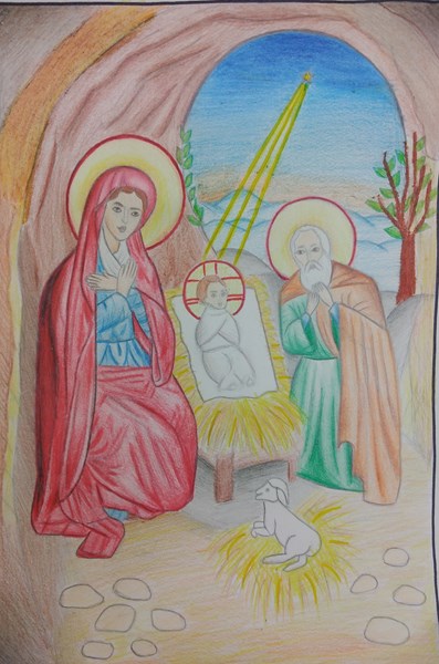 В категорията за рисунка в групата от 7 до 10 клас на първо място е Румина Димова от 8а клас, специалност „Интериорен дизайн“ с рисунка „Тиха нощ, свята нощ“, изработена с цветни моливи.