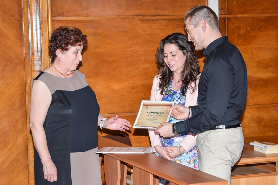 На раздяла съдия Димитров връчи грамота на всеки един от участниците, а на госпожа Севева – зам. директор в ПМГ „Баба Тонка“ гр. Русе, грамота за принос на гимназията към запознаването с дейността на съда и повишаване правната култура на подрастващите.
