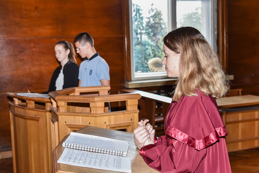 Съдията и учениците обсъдиха отделни елементи от казуса, който макар и с образователна цел, се базира на действителен случай от преди няколко години, когато непълнолетно лице след употреба на алкохол, използвайки джобно ножче, извършва умишлено убийство, като голяма част от преките свидетели на инцидента, започнал като на шега с размяна на реплики, са също непълнолетни.