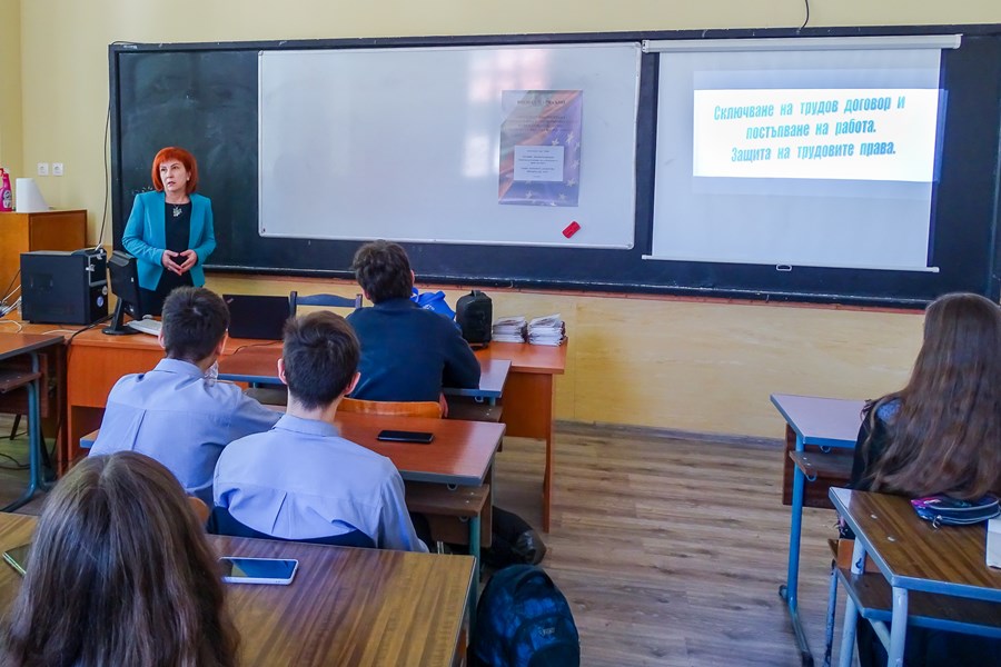 Съдия Антоанета Атанасова от Окръжен съд – Русе изнесе лекция на тема „Трудови правоотношения“, посветена на Световния ден за безопасност и култура на труда, който традиционно се отбелязва на 28-и април.