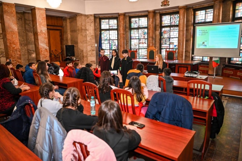 Необичаен урок по професионално ориентиране се проведе в Съдебната палата в Русе. Председателят на Окръжен съд - Русе Николинка Чокоева представи пред ученици от пети клас в Основно училище "Никола Обретенов" презентация на тема "Професия съдия".
