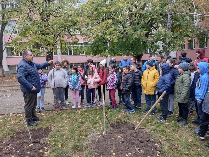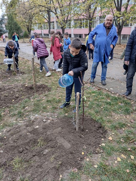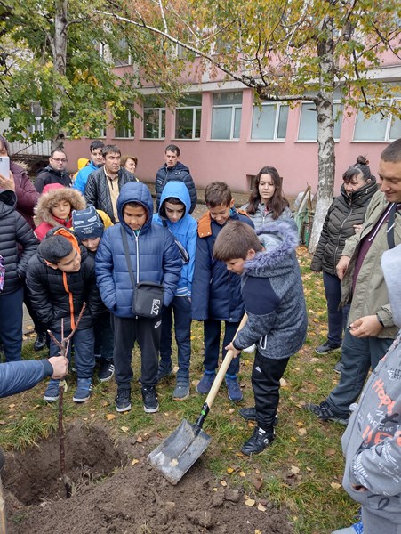 Паралелно с това учениците от „Олимпи Панов“ се включиха в засаждането и на плодни дръвчета от различни сортове – череша, слива, ябълка и кайсия. Съдействие получиха от специалист агроном, който разясни какви грижи се полагат при отглеждането на овошки.