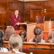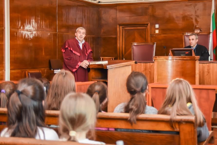 Учениците и техния ръководител - Ралица Арнаудова, бяха посрещнати в една от съдебните зали, където съдия Александър Иванов от Окръжен съд - Русе и прокурор Радослав Градев от Окръжна прокуратура - Русе представиха професиите „съдия“ и „прокурор“.