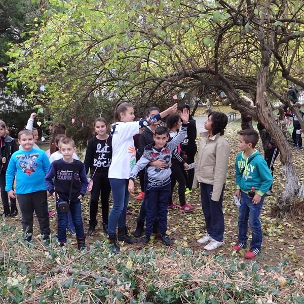 Децата предварително бяха подготвили своите послания и подредиха картините в изложба. Всички участници в срещата отправиха искрените си пожелания за толерантно отношение към съучениците си и ги закачиха на дървото на желанията в двора на училището