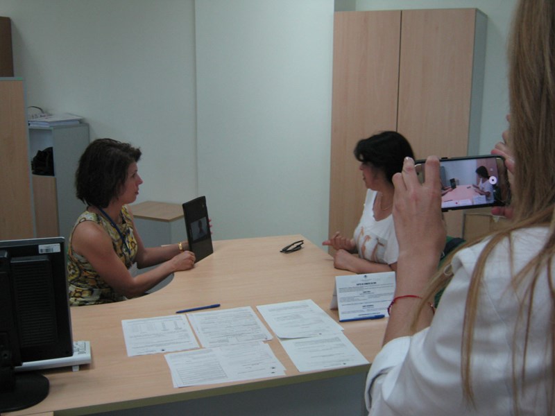 За онагледяване на предлаганата услуга ученическият екип е решил да заснеме 2-минутен клип на реално работно място. Децата обстойно са проучили всички подходящи администрации в града с условията в техните офиси и безапелационно са избрали „снимачния терен“ да бъде в НАП. Конкретният сценарии проследява как клиент със специфични потребности в речта и слуха посещава офиса, за да уточни своя здравно-осигурителен статус и да възстанови здравноосигурителните си права. Комуникацията между служителя на НАП и клиента се осъществява с посредничеството на онлайн-преводач, чиито услуги са достъпни през разработения от учебната компания специализиран сайт с използването на обикновен таблет. В реализирането на клипа участват и служители на агенцията, а интериора - с електронните табла и специфичната атмосфера, с логото на агенцията, хартата на клиента и различни видове формуляри на документи, придава много достоверност и реализъм на филмовото действие.