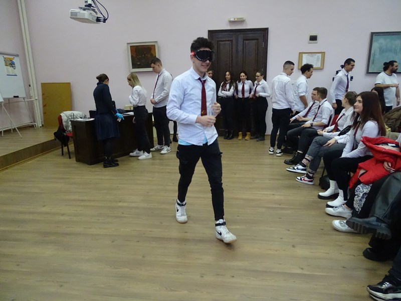 Съдия Бойчев обясни кога едно деяние е нарушение и кога – престъпление. Той даде и конкретни примери за престъпления по транспорта, описани в Глава ХІ на Наказателния кодекс на Р България. Специално внимание беше обърнато на управлението на МПС под влиянието на алкохол и наркотични вещества. За да изпитат учениците сами какво означава това, г-жа Тончева им предостави алкоочила. По този начин младежите имаха възможност да разберат как употребата на спиртни напитки и наркотици влияят върху възприятията и реакциите им.