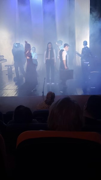 В постановката участваха също и статисти от актьорския състав на 8 А клас, които допринесоха за цялостното въздействие на спектакъла.