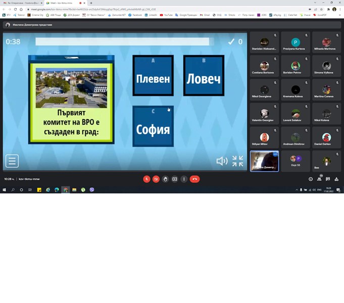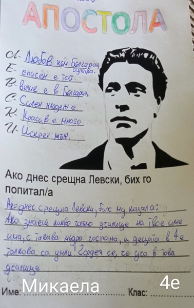 Нарисуваха портрети, картини и записаха видеоклипове в конкурса „Нося Левски в сърцето си“. Техни ментори бяха класните ръководители от начален етап, както и учителите по изобразително изкуство в прогимназиален и гимназиален етап. Писаха акростихове и синкуейн. В много класове се проведоха и викторини под надслов „Стани Левски“, свързани с живота на Дякона, подготвени от г-жа Ивелина Димитрова и г-жа Петя Михайлова. За финал се проведе факелно шествие с четири лъча от четири различни точки в квартал Дружба, като крайна точка беше паметникът на Васил Левски в двора на училището. Там г-жа Петя Михайлова отправи възпоменателно слово: