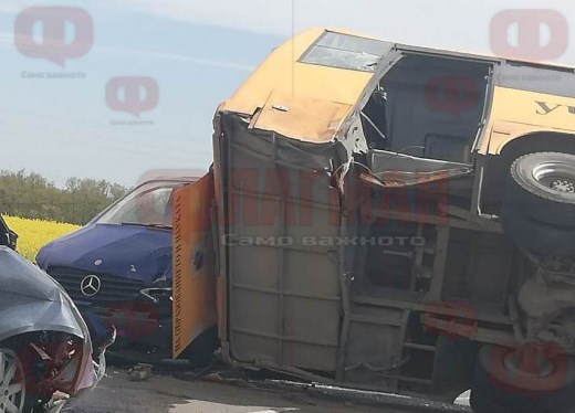 Автобусът се е преобърнал, била е рязана вратата му, за да бъдат извадени децата. Другите участници в пътното меле са Мерцедес-ван и Ауди А6. И двата автомобила, които са се врязали в автобуса, са с бургаска регистрация.