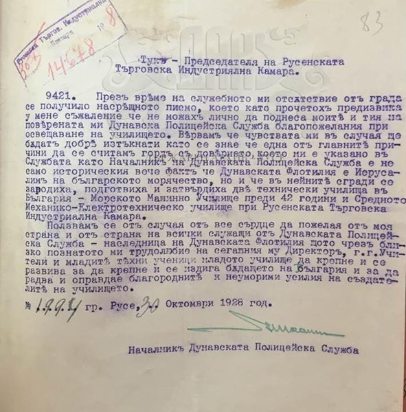 В началните си години училището функционира в сградите и работилниците на Дунавския флот. Седем години по-късно, на 28 октомври 1928 година, учебното заведение се сдобива със собствена сграда, чието откриване е отбелязано с мащабно тържество.