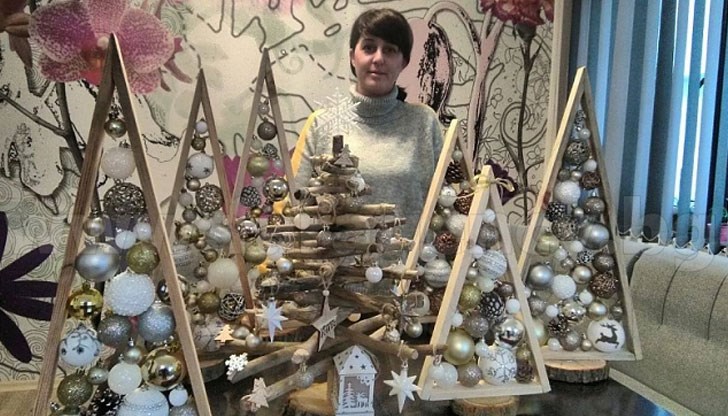 35-годишната Десислава Стоянова създава два вида от празничните дръвчета. Едните са стилизирани под формата на триъгълник, а другите са от кръстосани клонки, които детската учителка в ЦДГ „Ален Мак“ е събрала от морския бряг.