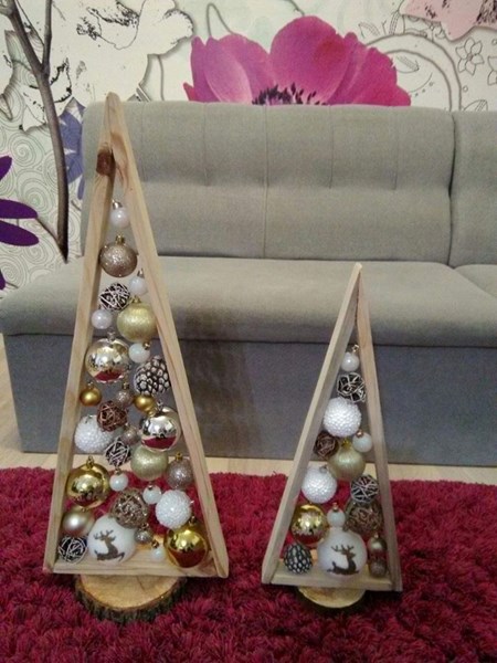 „Преди правих елхи под формата на конус, но обвити с канап. Правила съм и коледни дръвчета в кръгли форми с шишарки, които също станаха много красиви“.
