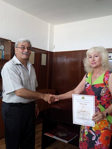 Наградата на г-жа Димитрова бе връчена от г-н Димитър Райнов – Началник Регионален инспекторат по образование – гр. Русе.