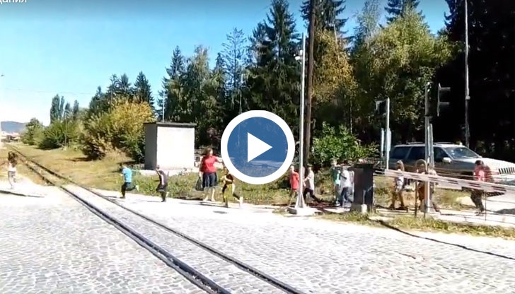 "Тотално селско безхаберие на учителката. Децата видяха, че идва влак, и се спряха...", е коментарът на потребителя, качил видеото.
