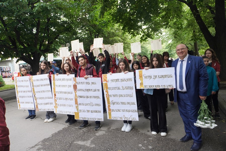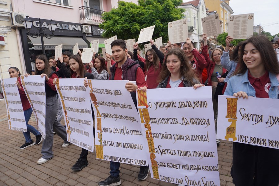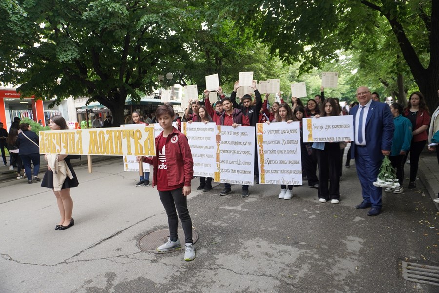 Участието на гимназията в празничното шествие за 24 май беше особено запомнящо се. След знаменната група ученици с гордост носеха изработени от самите тях табла с текста на "Азбучна молитва" от Константин Преславски. В шествието се включиха и бивши учители и родители, което подчертава приемствеността и значимостта на образователната традиция в училището.