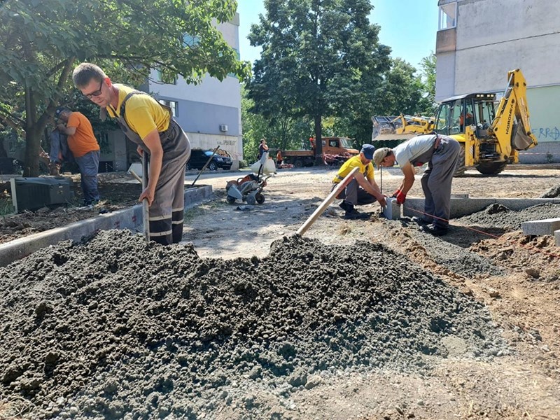 - стартираха строителните дейности по подготовка на зоните за паркиране, пешеходните алеи и обслужващата улица в околоблоковото пространство към бл. „Родопи“ в кв. Здравец – Север 1
