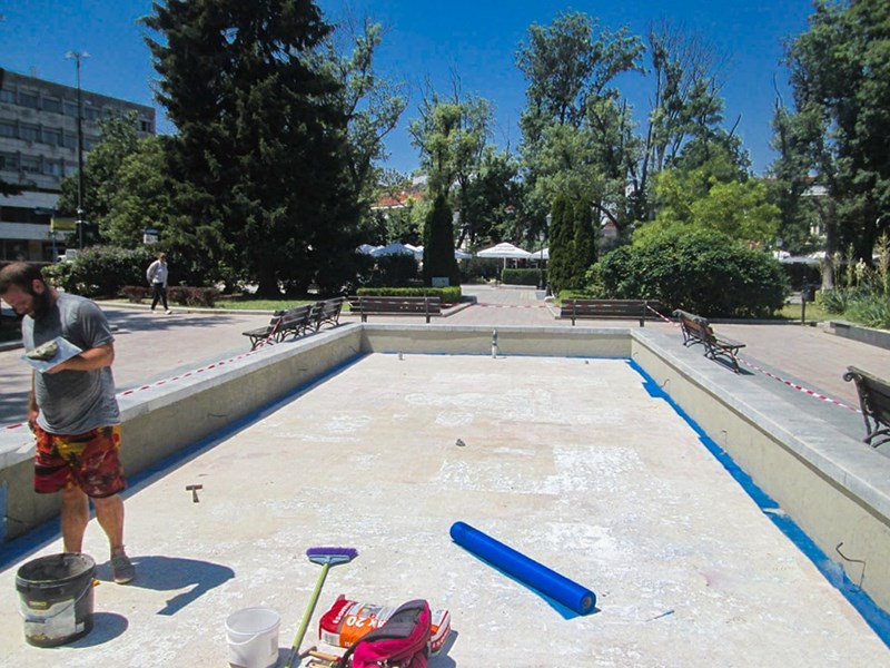 - продължава ремонтът на настилката и облицовката на фонтана срещу входа на Доходното здание;