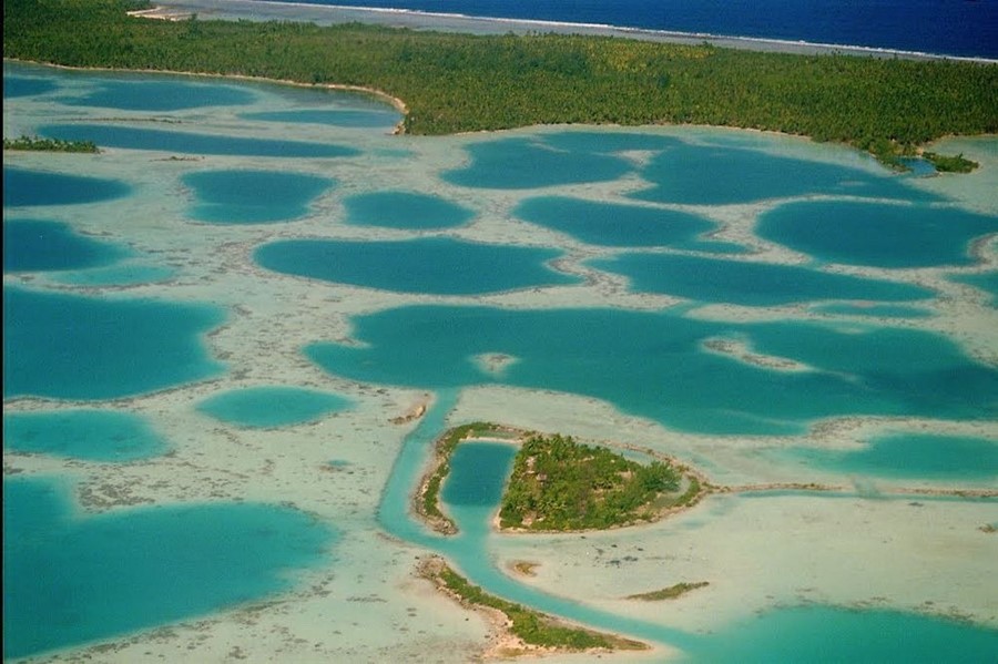 Хребетите и различният цвят на водата в басейните придават на лагуната невероятно красив вид, когато е гледана отгоре.