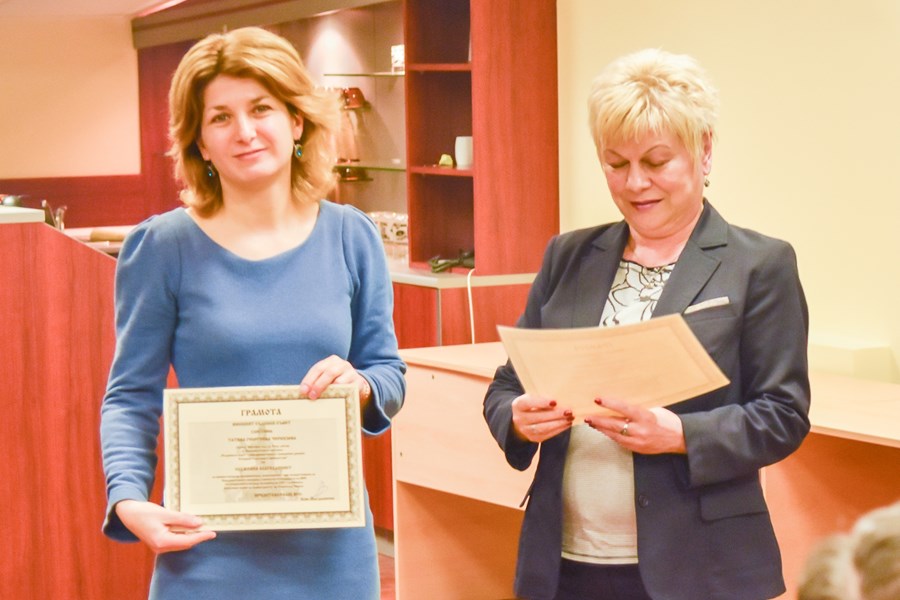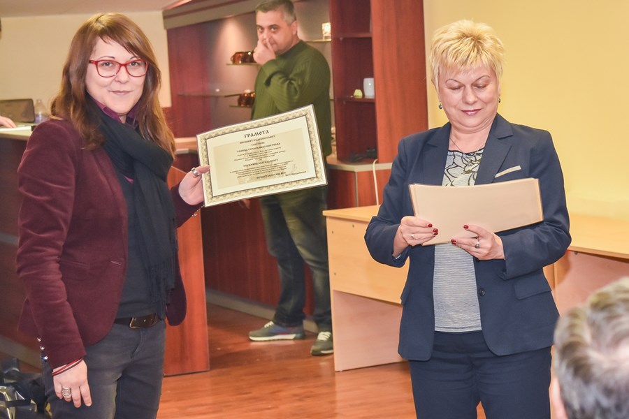 Отличените съдии - Татяна Черкезова, Николинка Чокоева, Палма Тараланска, Ралица Герасимова, Антоанета Атанасова, Александър Иванов и младши съдия Атанас Димитров, получиха грамотите си от административния ръководител на ОС – Русе – съдия Искра Блъскова, която поздрави колегите си и на свой ред им благодари за отделеното време, положените усилия и проявения висок професионализъм.