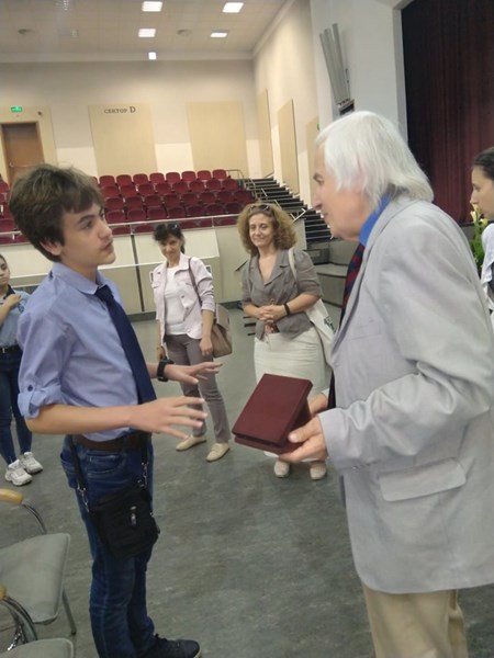 Той пристигна в града по покана на Фонда, за да се срещне с учениците и преподавателите от МГ „Баба Тонка” – Русе. Теодосиев получи приза за високите постижения на неговите възпитаници и за издигане авторитета на страната ни в международен план.