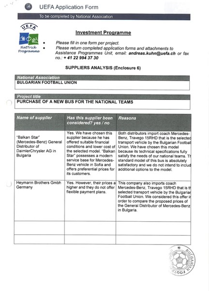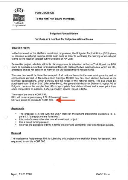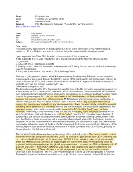 От кореспонденцията става ясно, че след неуспешния опит да се купи скъп автобус, основен предмет на преговорите за финансиране от УЕФА става Националния тренировъчен център по футбол. Той ще стане факт 11 години по-късно и УЕФА ще налее в него милиони. Сагата с проектирането, изпълнението и значителното оскъпяване на проекта във времето е документирана в десетки файлове, чийто анализ е предмет на последваща публикация.
