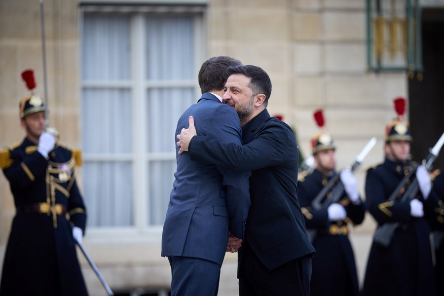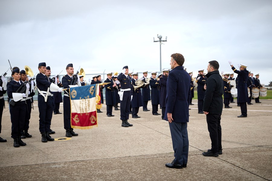 Президентите на Украйна и Франция, Володимир Зеленски и Еманюел Макрон, подписаха ключово споразумение за отбрана. Двамата лидери парафираха писмо за намерение, което предвижда Киев да придобие до 100 изтребителя "Рафал" и друго модерно оборудване за противовъздушна отбрана, съобщиха световните агенции.