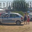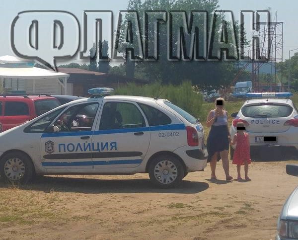 Районът е отцепен от полиция. В непосредствена близост до ивицата са паркирани две патрулки.