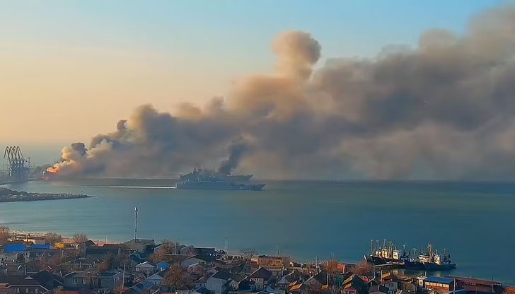 Десантният боен кораб "Орск" бе атакуван успешно в окупираното пристанище на Бердянск