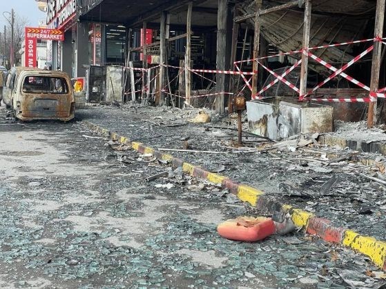 От коледните празници насам центърът на селото изглежда потресаващо. Един от двата централни супермаркета - Тор Market, изгоря на 21 декември и оттогава остатъците от пожара стоят недокоснати. На местните жители се налага всеки ден да минават през натрошени стъкла.