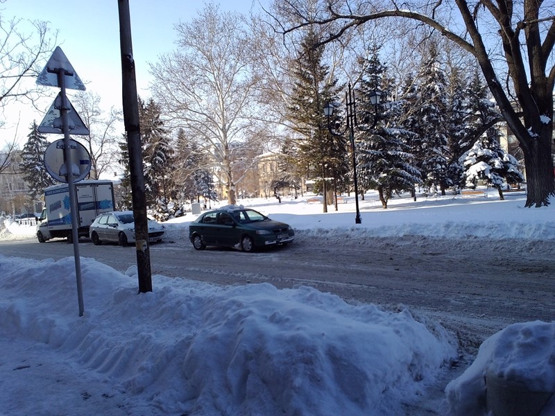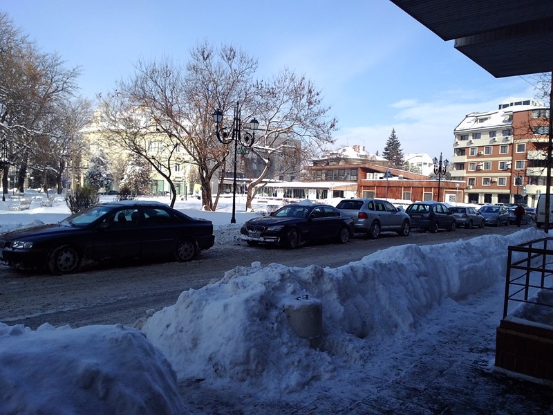 Въпреки забраната, улицата пред Регионална библиотека "Любен Каравелов" се превърна в паркинг.