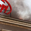 Футболните фенове, макар и под ескорта на полицейска охрана, са изстреляли запален предмет, който е попаднал на покрива на сградата, в която се помещава ресторант Happy на площад "Севастопол". Не след дълго пожарът се е разгорял. Множество очевидци на инцидента са подали сигнал на 112.