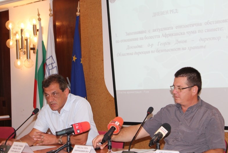 Заместник областният управител на област Русе Свилен Иванов заедно с директора на Областната дирекция по безопасност на храните д-р Георги Дяков проведоха заседание на Постоянно действащата междуведомствена областна епизоотична комисия във връзка с усложнената обстановка по отношение на болестта африканска чума по свинете на територията на региона.