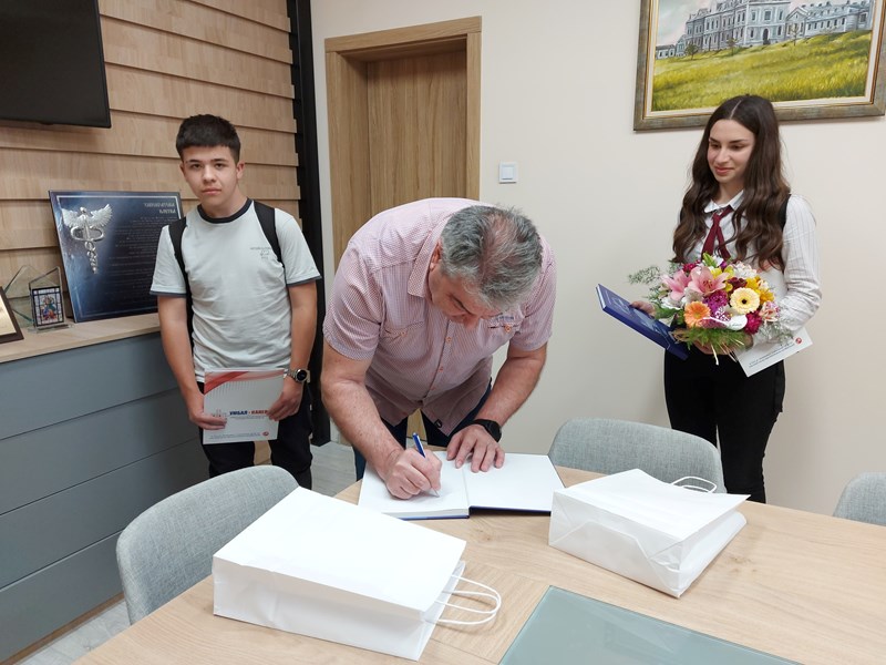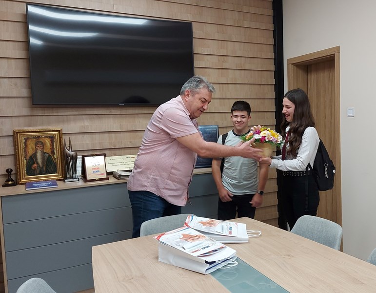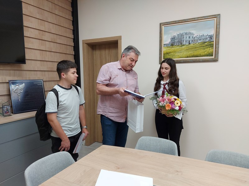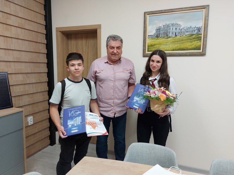 Учениците бяха поканени в болницата, където получиха алманах за юбилея на здравното заведение като признание за техния труд. Изпълнителният директор на УМБАЛ "Канев" Иван Иванов поздрави младежите за тяхното постижение.
