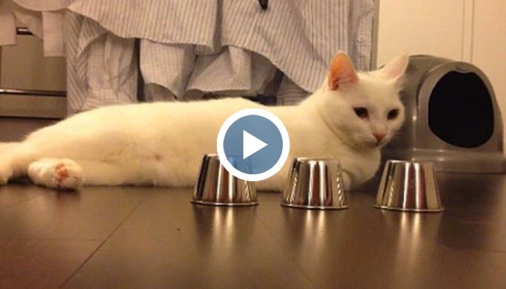 Умно коте играе на "тука има, тука нема"