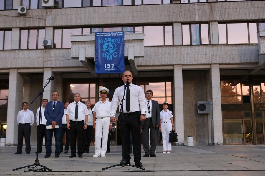 Командирът на военноморските сили, контраадмирал Митко Петев, разказа историята на флота като заяви, че едва имащи държава, българските управници решават да утвърдят силата си със създаването на перо в армията, което да защитава суверенитета и на морската ни граница. „Българският флот е бил подложен на много изпитания, но е успял да се съхрани и развива с достойнство, чест и дълг към родината“ – каза още контраадмирал Петев.