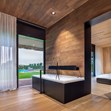Обраният стил на интериора си личи дори в банята, където също преобладава дървото. / От Аntre