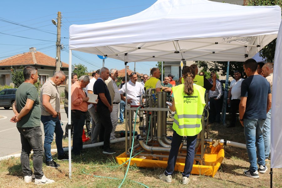 Уникалната демонстрация се проведе в присъствието на областния управител на Русе Драгомир Драганов, който е председател на Асоциацията по ВиК, управителя на ВиК дружеството инж. Илиан Милев и кмета на Бяла Димитър Славов. Технологията бе приложена върху реално повреден водопровод, снабдяващ района на гара Бяла на улица "Васил Априлов".