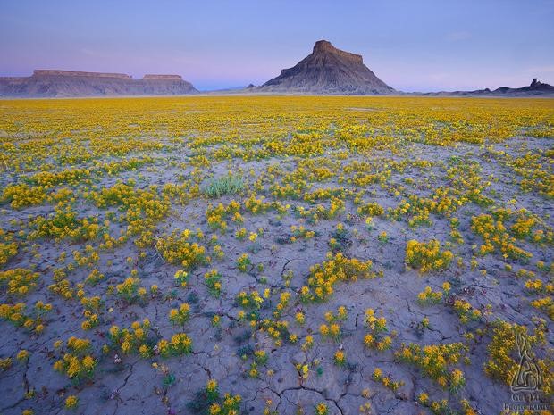 Когато условията са подходящи, пустинята в щата Юта експлодира от диви цветя, които буквално застилат като пъстър килим безплодната земя, украсена с остри и ерозирали от вятъра и водата скали.