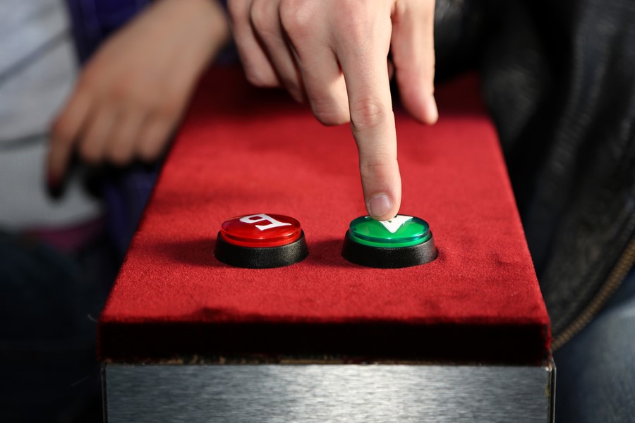 Първият интерактивен филм на Съзнателното Кино се нарича “Помисли!”. Сюжетът на филма се гради на базата на редица събития, които провокират героя. В зависимост от реакцията му във всяка ситуация, сюжетната линия променя посоката си и дава различни възможности на зрителя да “изживее” един или друг сценарий. Провокациите представляват конфликтни ситуации от типа на тези, с които човек се сблъсква всеки ден. Зрителите ще се включат активно в сюжетната линия с решаващо натискане на бутон за избор на изход от дадена ситуация.