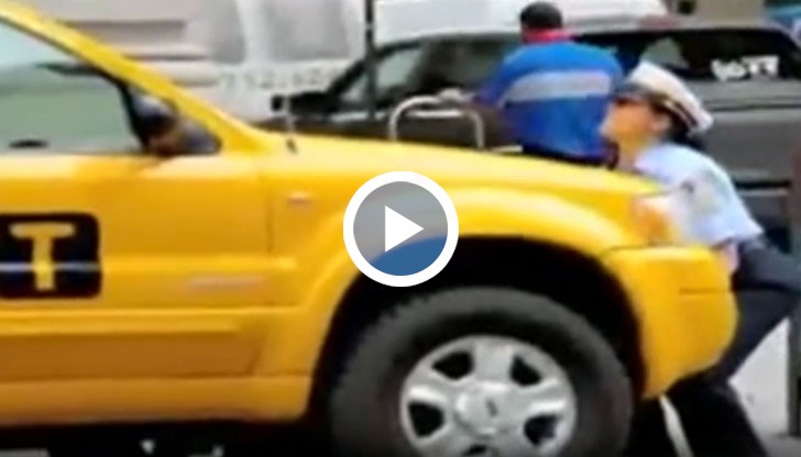 Уникално видео! Жена-полицай сама премести таксиметров автомобил