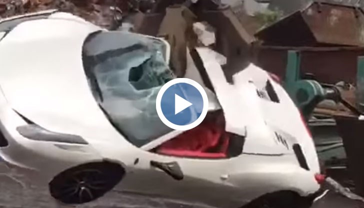 “Ферари 458 Спайдър” с цена около 200 000 лири (над 400 000 лева) бе буквално разпарчетосано в британска автоморга.